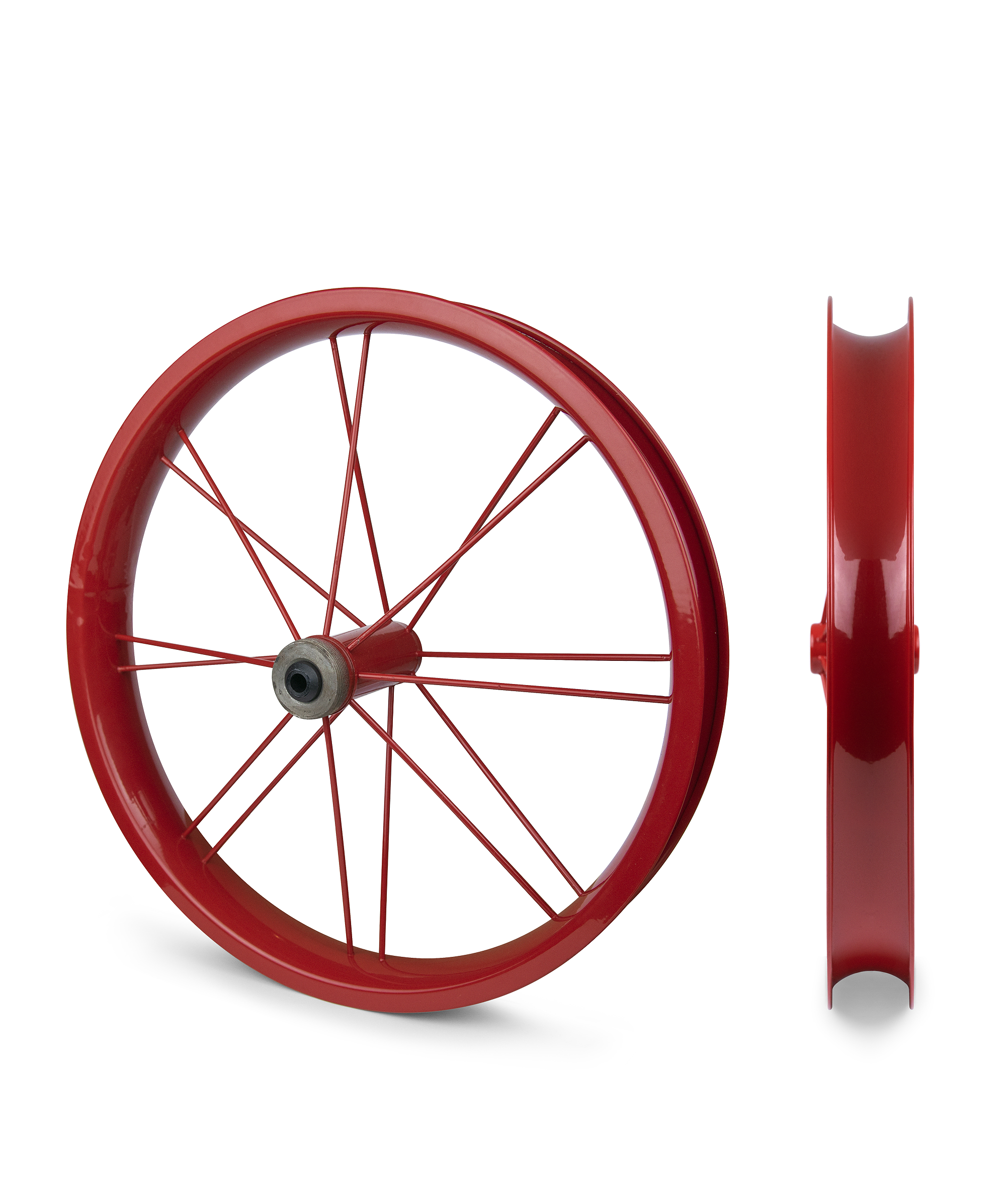 Ruota in ferro 16” a raggi saldati versione SPECIAL con cerchio a bordi risvoltati larghezze cerchio disponibili 30 mm oppure 40 mm
